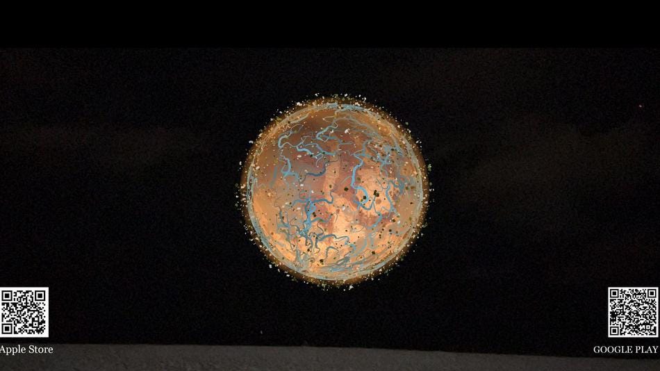 The Event: STONE SPEAKS is a monumental, narrative augmented reality artwork inspired by conversations between artist Nancy Baker Cahill and Sophia the Robot. Commissioned by Borderless Capital to reimagine climate crisis solutions, the artists exchanged thoughts about the accelerating climate crisis on our imperiled planet, and the adaptive potential of human-machine collaboration.