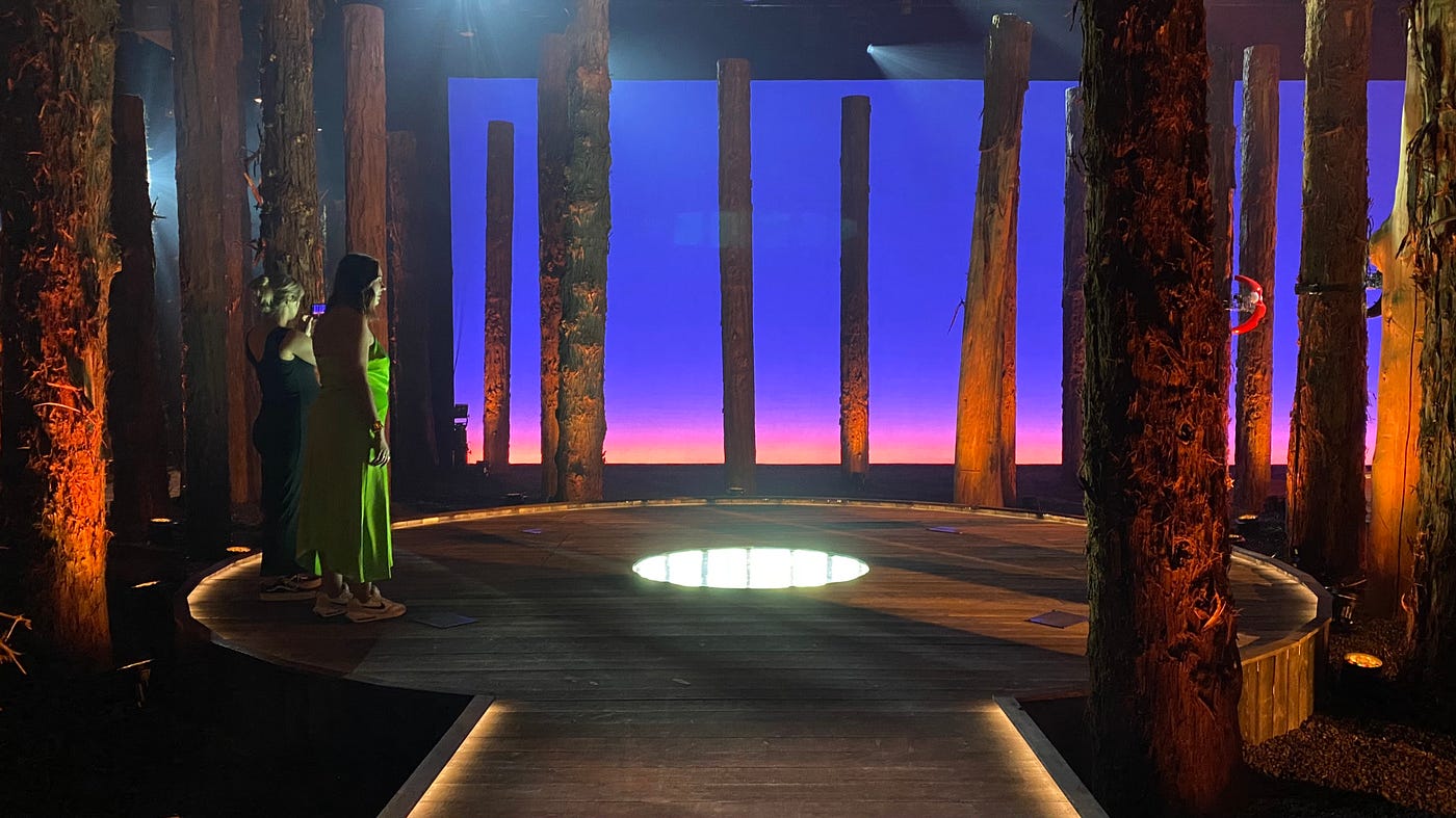 These three stages prime participants for A Forest’s second act: a cavernous woodland with four installations. Reclaimed remnants of redwoods border the space, encircling a well of illusion, a raked stage of fire, and animatronic trees flanking a sculpture representing an ancient Great Basin bristlecone pine (which have lived through ice ages, the rise of major religions, and the fall of great empires).