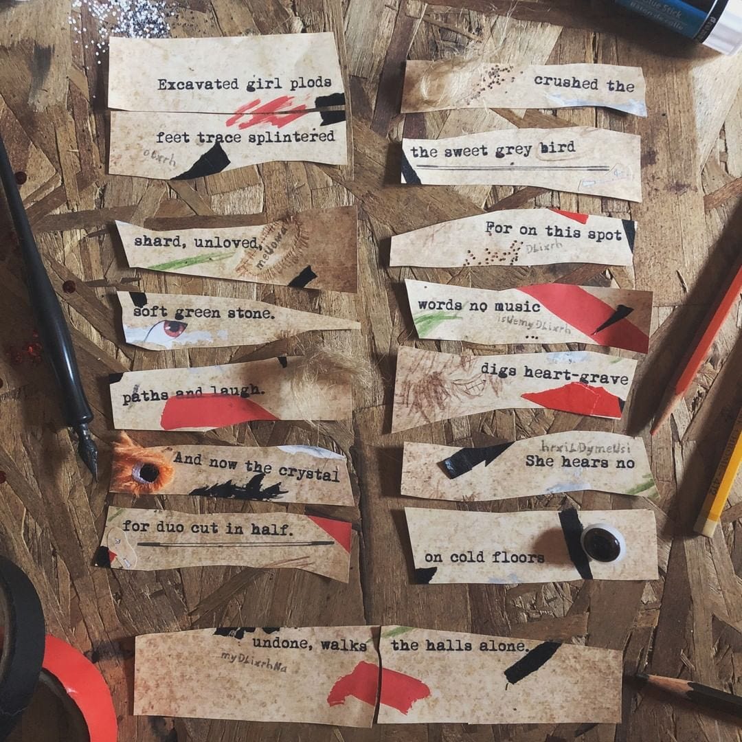 Supernatural elements infuse the story, first in the form of nightmares. In her departure for Oregon, Robin left behind art supplies and miscellaneous possessions, haphazardly discarded around the house, mostly in boxes in the attic. Recycling some of these materials, Jade channels the fear and anxiety from her nightmares into art therapy, creating visual representations of her terrors. Clues abound in these art projects and in general posts about Jade’s life. I, however, often noticed only the most obvious plants: dismembered doll parts, for starters. I also deeply and erroneously considered innocuous objects, such as a glue gun; to me, that could legitimately pose as a threatening weapon within this context. I admit my suspension of disbelief can go overboard and so I sought support from fellow participants by way of the posts’ comments.