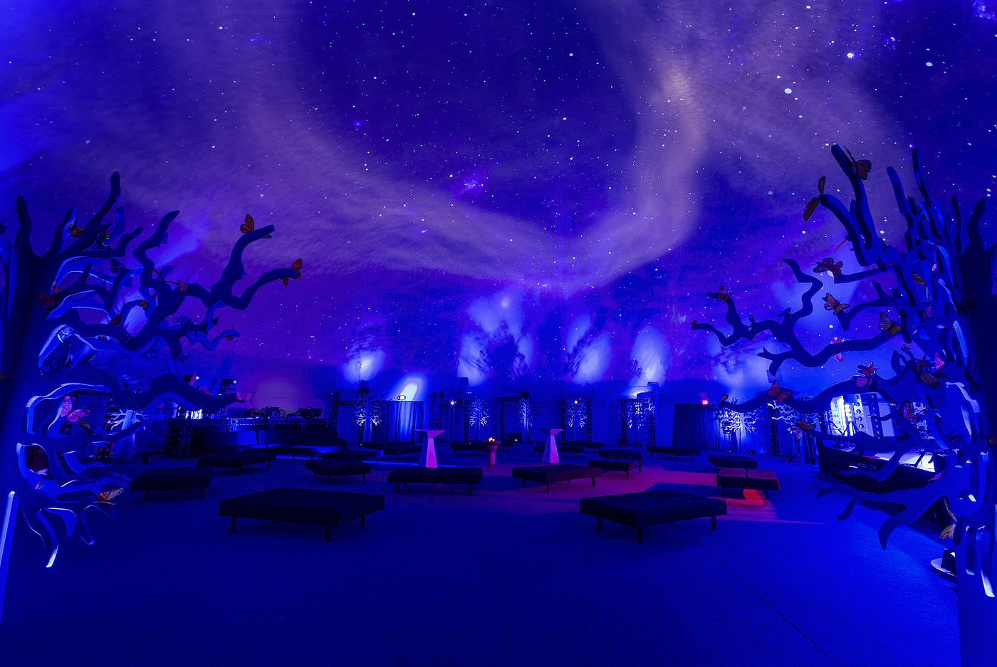 I went with a friend (who else would take the photos?) to see how Wisdome’s projections can bring us on a journey of life, death, and rebirth with a beer in hand. Upon entering, the campus is spacious and decorated for a cocktail party but nothing inspiring stood out. Of course, the domes themselves are the main attractions.