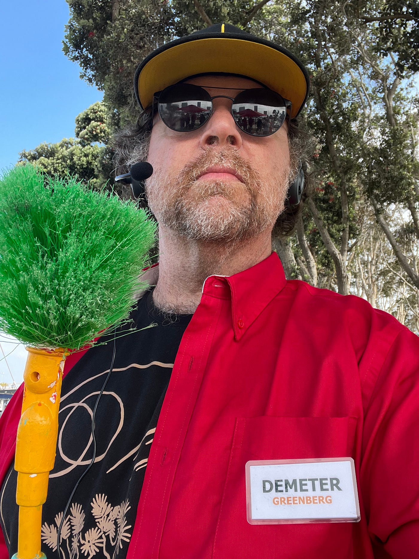 We split from those friends and took a beat to drop into Brassroots District: Live in the Lot Summer ’73 long enough to catch the opening act and for me to say “Hi“ to Monica Miklas and Andrew Leib, director and producer respectively. Then saw two more friends, one of my best in fact, who had swung down from LA for the fest and was watching the show. We managed to catch the opening number — man, this show is so GOOD — before we had an appointment with an oddball interactive show/ritual called Cleaning The Stables.