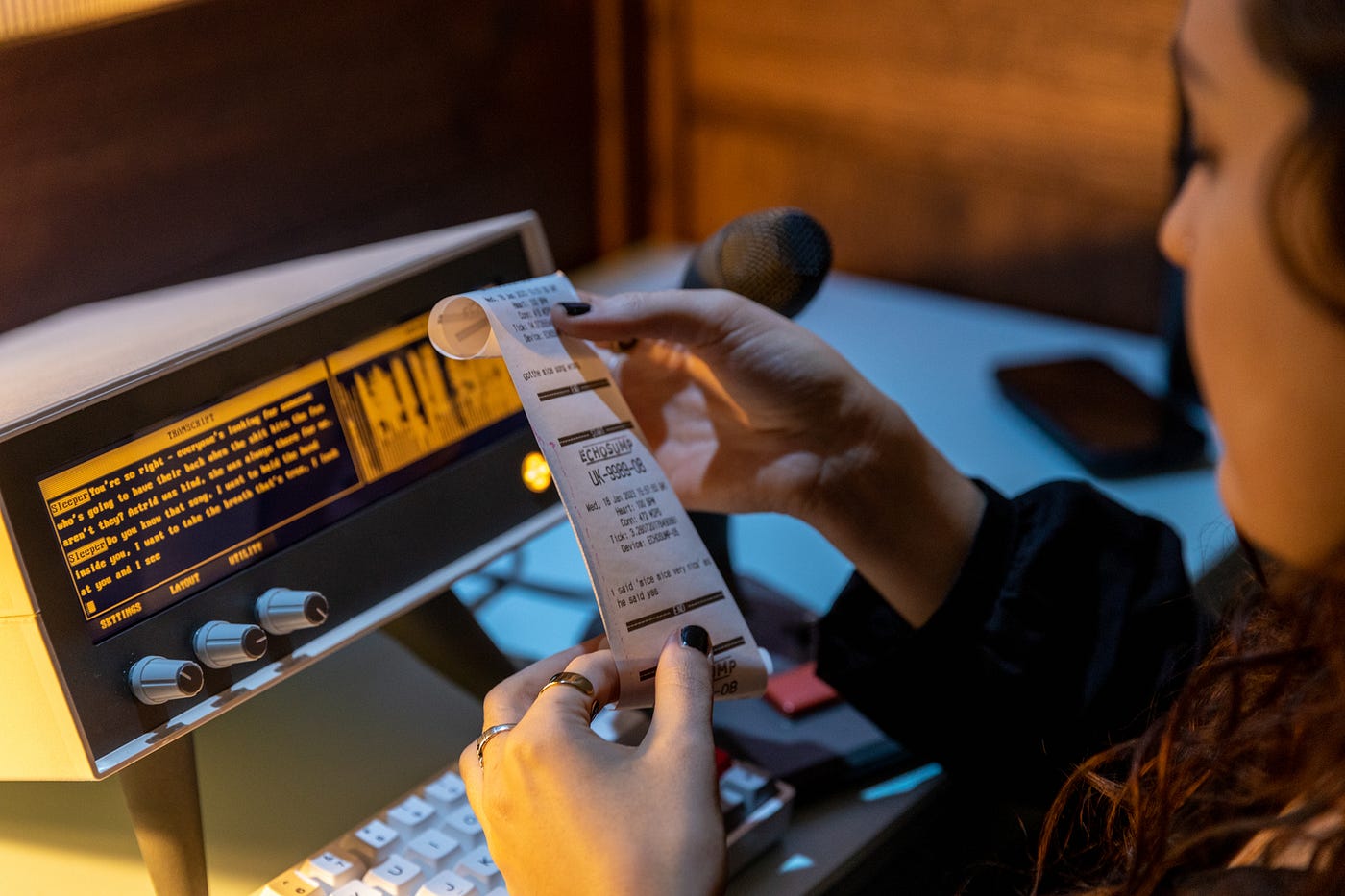 The show is run in groups of twenty but experienced individually — great for solo-run enthusiasts. As the pod setup runs on a computerized predictive response script (either spoken or written, from either end), there’s surprisingly little roleplay required from guests and the script is refined daily with updated responses to ensure that the audience experience will get smoother over the run. There’s even one or two in-world side-missions that might be triggered (narrative progression dependent) and three different endings possible, so repeat visits and varying group experiences are worthwhile. My side mission happened to be opportunely timed so that I ended up not having any trouble completing it undetected, but I saw a couple folks having to sneak their way around the space and having fun with it; personally I would have liked more time to explore the environment to admire the elegant scenic design and engage more with the single live actor. Unfortunately the current production structure doesn’t allow for this.