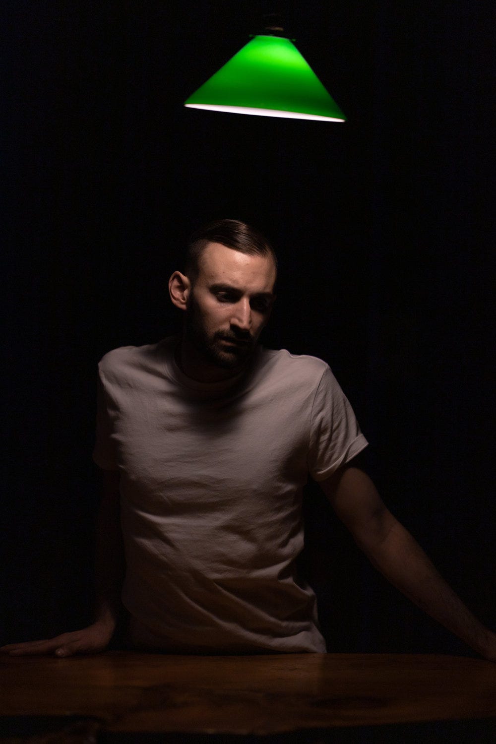 The venue itself, Arts on Site, contributes to the haunting atmosphere of the piece but also competes for status as the star of the show. This apartment looks more like a film set than a real habitat, thanks to its exposed brick walls and tall windows with back-lit greenery, and a monumental wooden bar counter, all enhanced by dramatic dim lighting. The setting looks like an eccentric man-cave with a 70’s vibe, which doesn’t entirely feel like it “belongs” to our characters. The duo floats in and out of the space, figuratively speaking. About half the time, their dance has a clear orientation towards one side of the room, making the experience very proscenium-like. These moments where the site isn’t engaged make me think of the venue as being arbitrarily chosen. On the contrary, some of the most beautiful choreography bits are the ones that actually use the features of the space, like a sequence that happens on the bar itself. The massive wooden bar counter becomes a “stage.” The lighting fixtures hanging above it frame the action and create an eerie lighting effect when brought into motion. The interior and the choreography finally become one. Unfortunately only about half of the scenes incorporate the environment in a meaningful or aesthetically interesting way.