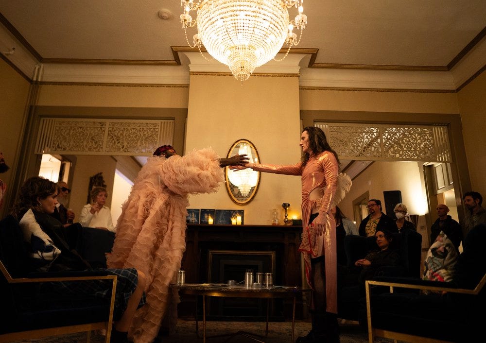What I think fans of immersive will really love is how many different ways there are to engage. We’ve built three distinct performance zones — a drag cabaret, a high-energy dance revue, and a moody, intimate basement installation — each with its own tone, rhythm, and social rules. Maybe you plant yourself in the Kit Kat Club and vibe with the drag artists all night. Maybe you roam between numbers in the Fandango Ballroom. Maybe you end up in the shadows downstairs, catching something tender and strange. Each space offers a different kind of access — emotionally, physically, energetically.