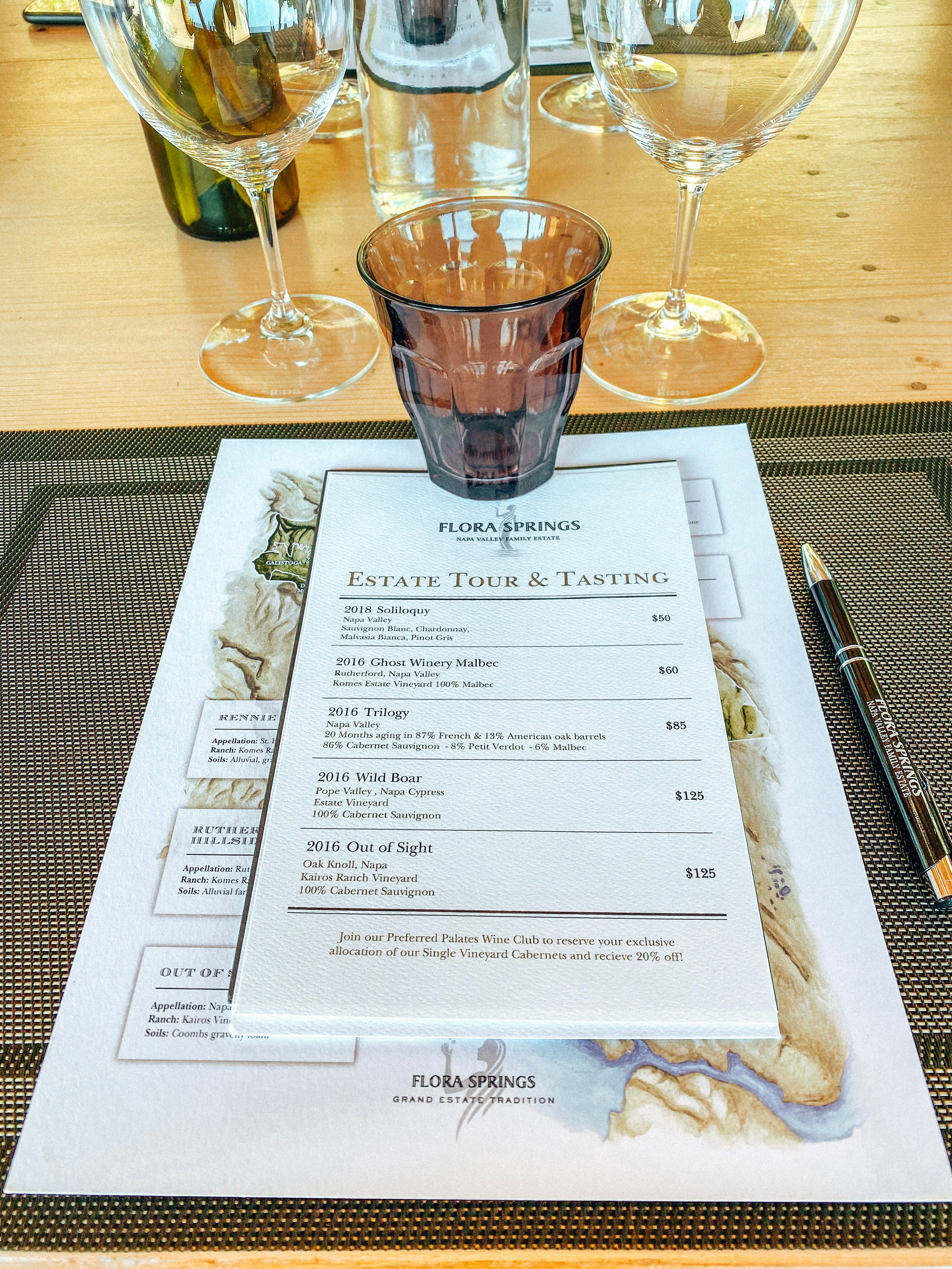 Once the tour is over, you exit the cave and are greeted by the most beautifully set table! With a glass on the right and a glass on the left, you know you’re in for a sensational time. Your guide on this wine adventure is Ted, formerly the wine purchaser at the Four Seasons, Ted knows his stuff. What followed was a parade of delicious red wines! With each glass, he explains he history behind it as it pertains to Flora Springs, as well as any interesting fact you may not know about that certain type of wine. It was fun, educational, and the wine was delicious! Click here to read about the rest of my day in Napa.