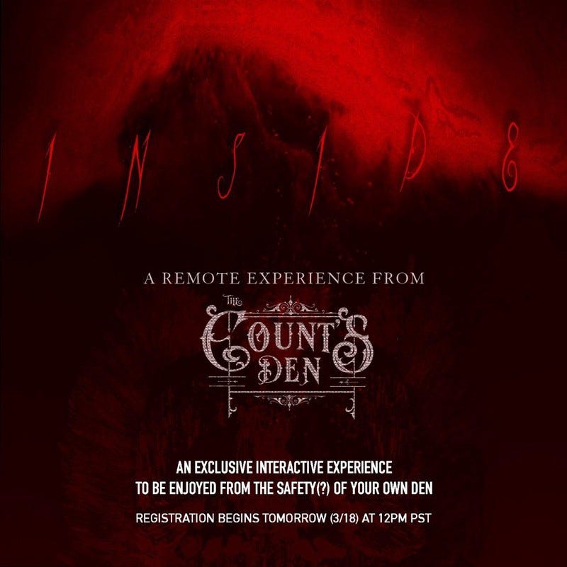 The Count’s Den is delighted to present INSIDE — our first interactive story to be experienced entirely remotely. Using a combination of multiple communication platforms and audiovisual elements, INSIDE provides guests the ability to interact with the vampiric residents of The Den and actively engage with and even influence the outcome of an entirely new narrative.