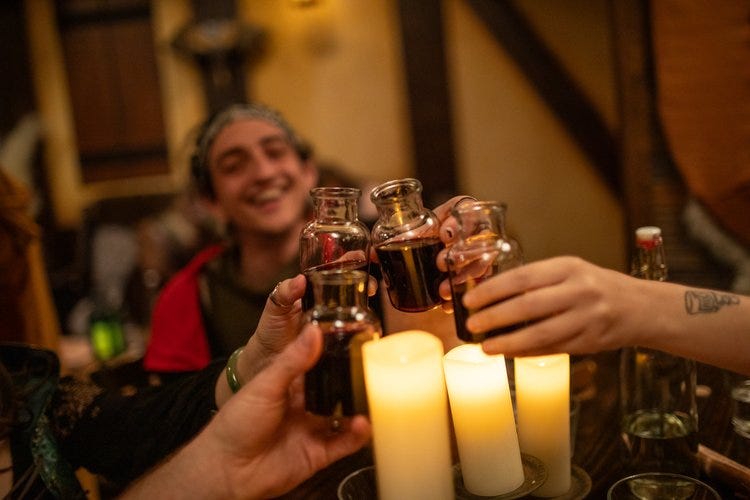 Taylor Frost: Squirrelor’s Tavern is a highly immersive medieval tavern, that is an interactive, dinner and drink experience. Each booking is 2–2.5 hour that includes 2 drinks!