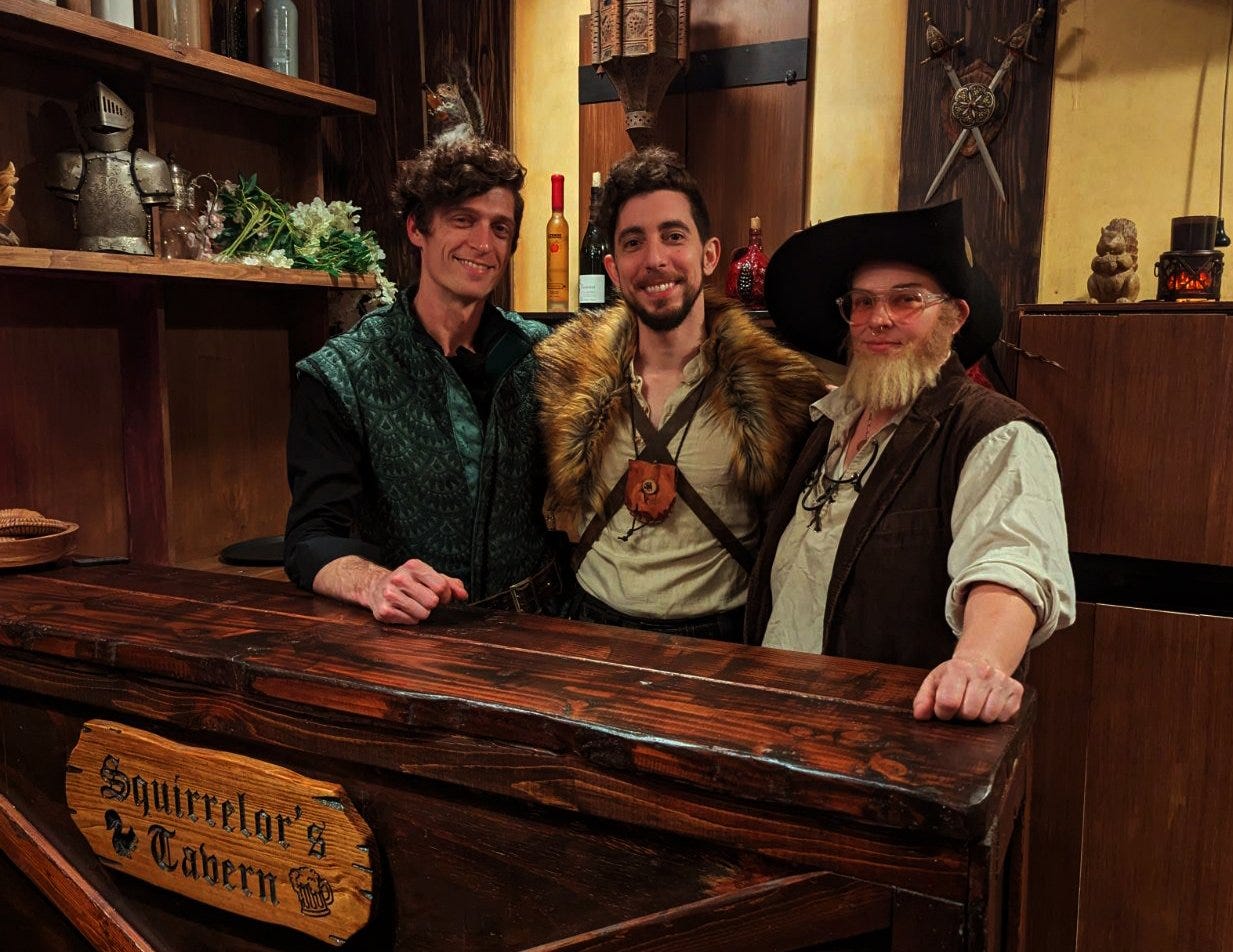 TF: I particularly enjoy that there is something for everyone at Squirrelor’s Tavern. If you enjoy puzzles, we have those available. If you enjoy performances, we have very talented and charismatic cast members. If you really enjoy set design, and being immersed in a space, we like to think our space is truly special.