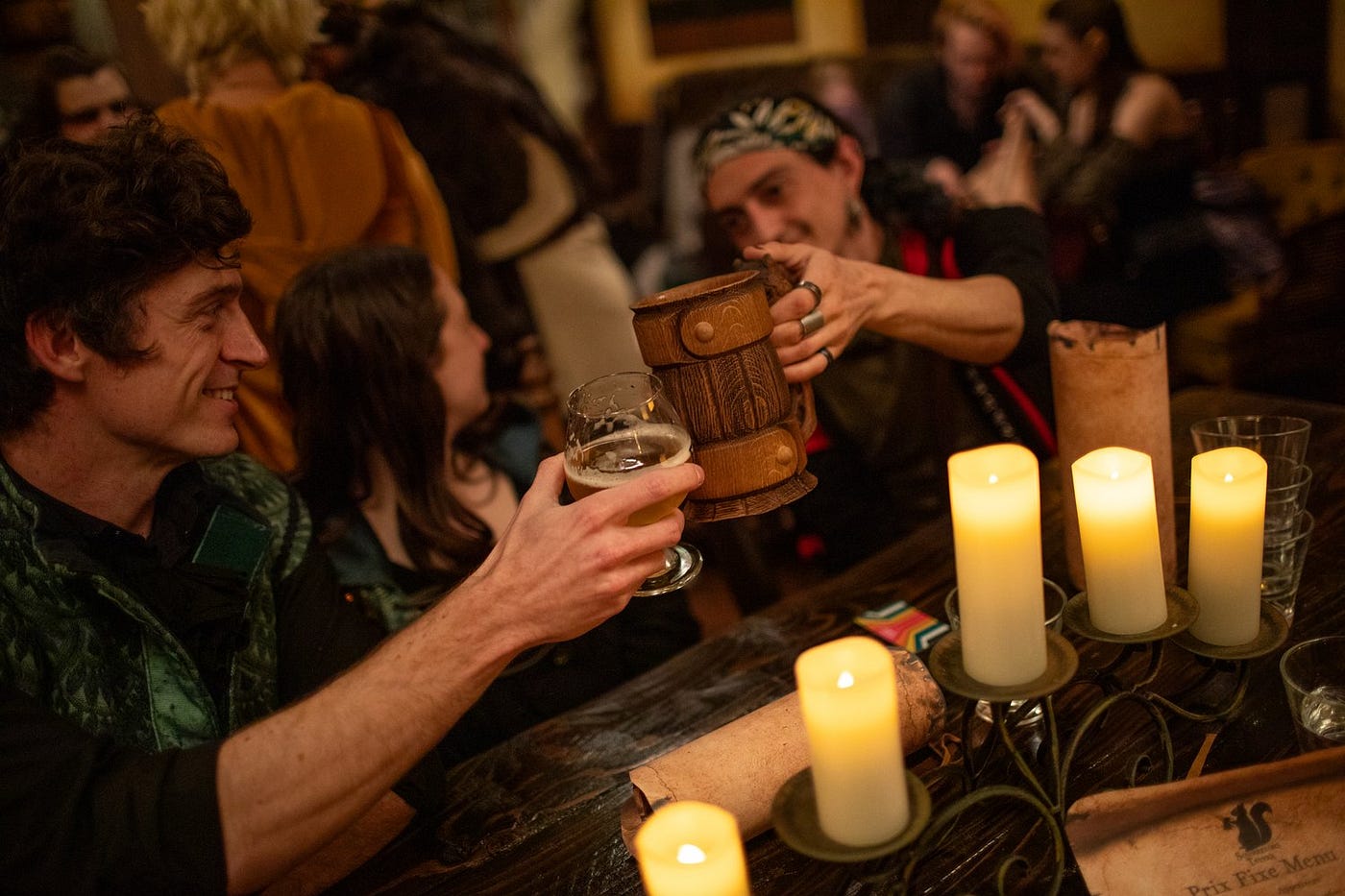 TF: What a great question! My biggest suggestion would be to dress up! Even if you don’t have an elaborate costume, dressing up in something simple, like a pirate costume, will go a long way to getting yourself in the mood to play pretend like you’re in another world, drinking in a Tavern with your friends.