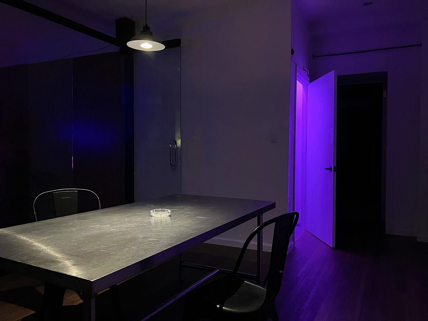 TN: Our initial inspiration was the venue, The Lower Case, an immersive arts space cofounded by Dustin in 2022. He wanted to do a show that transformed the space and took advantage of its interconnected rooms. We began experimenting with the idea of an audience using flashlights to direct the action. This was partially inspired by Dustin’s past work, The Aluminum Cat, an online show (in 2019, pre-pandemic!) where the audience communicated with actors using only their mice.