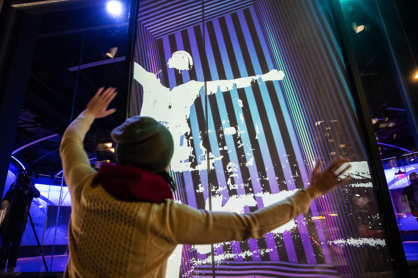 Figuration, a mesmerizing large-scale interactive video projector that illuminates the human body through light and sound