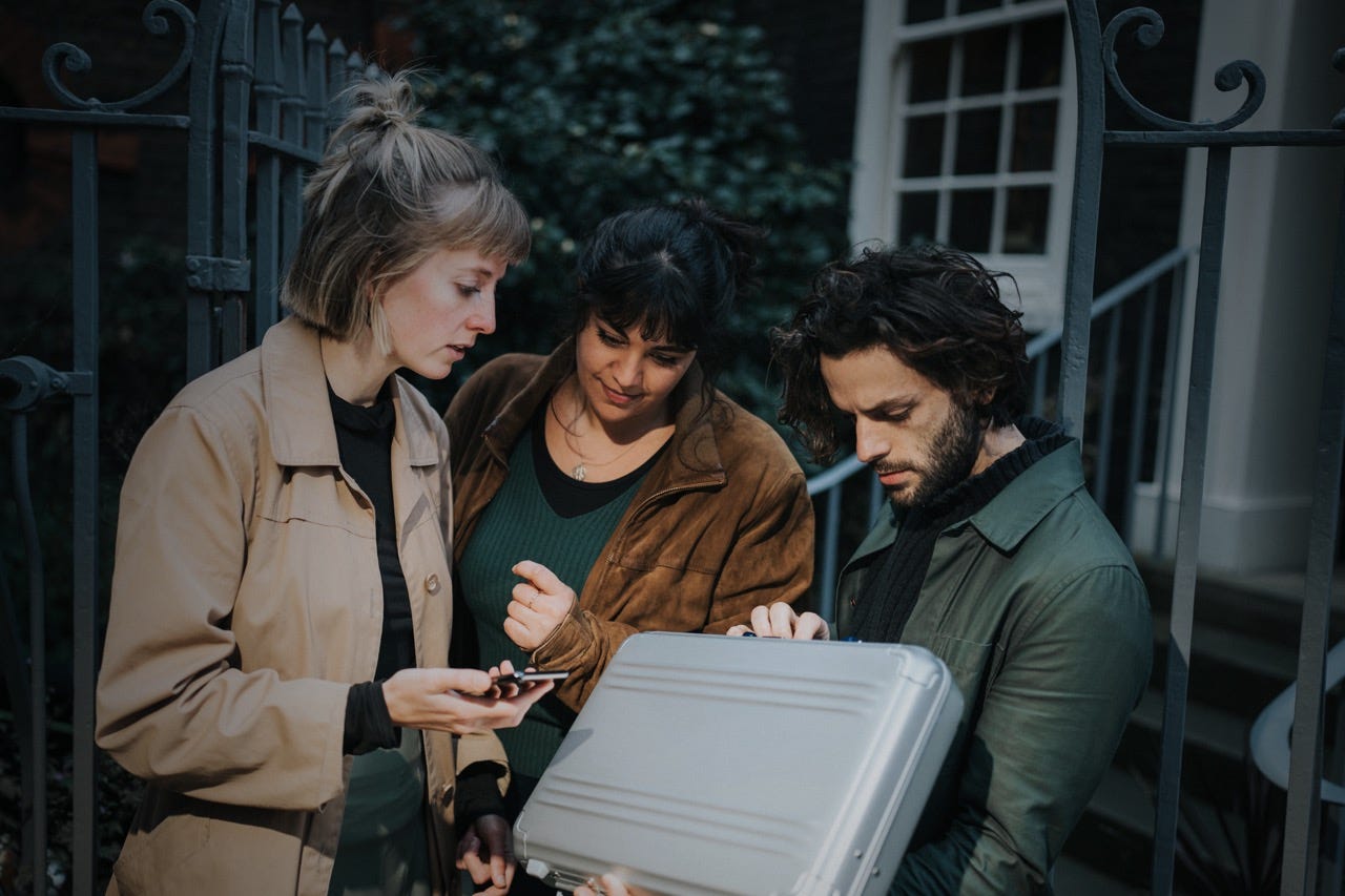 Gameplay is primarily phone-based, with instructions and clues arriving via automated text message/WhatsApp and some phone calls to a pre-recorded message. Several waypoints involve stepping into active shops/pubs where we speak to the shop worker for a secret package or are directed toward a hidden code within the space, but these are primarily employees of the business and not of the show itself (i.e. these aren’t actors) and we aren’t encouraged to linger in the active stores.