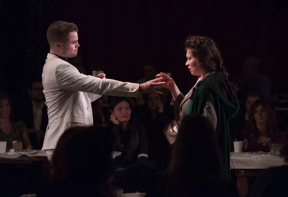 Sitting in the Club Car space of the McKittrick Hotel, I am transported from New York City to a local pub, somewhere in the Scottish highlands. A folk group sing as the audience enter the space, with fiddle, guitar and pipe. We are invited to hear the tale of the strange undoing of one Prudencia Hart, a Scottish academic who has dedicated their life to the study of ballads. On a particularly snowy night, her trip to a conference takes a devilish turn, and her life is turned around completely.