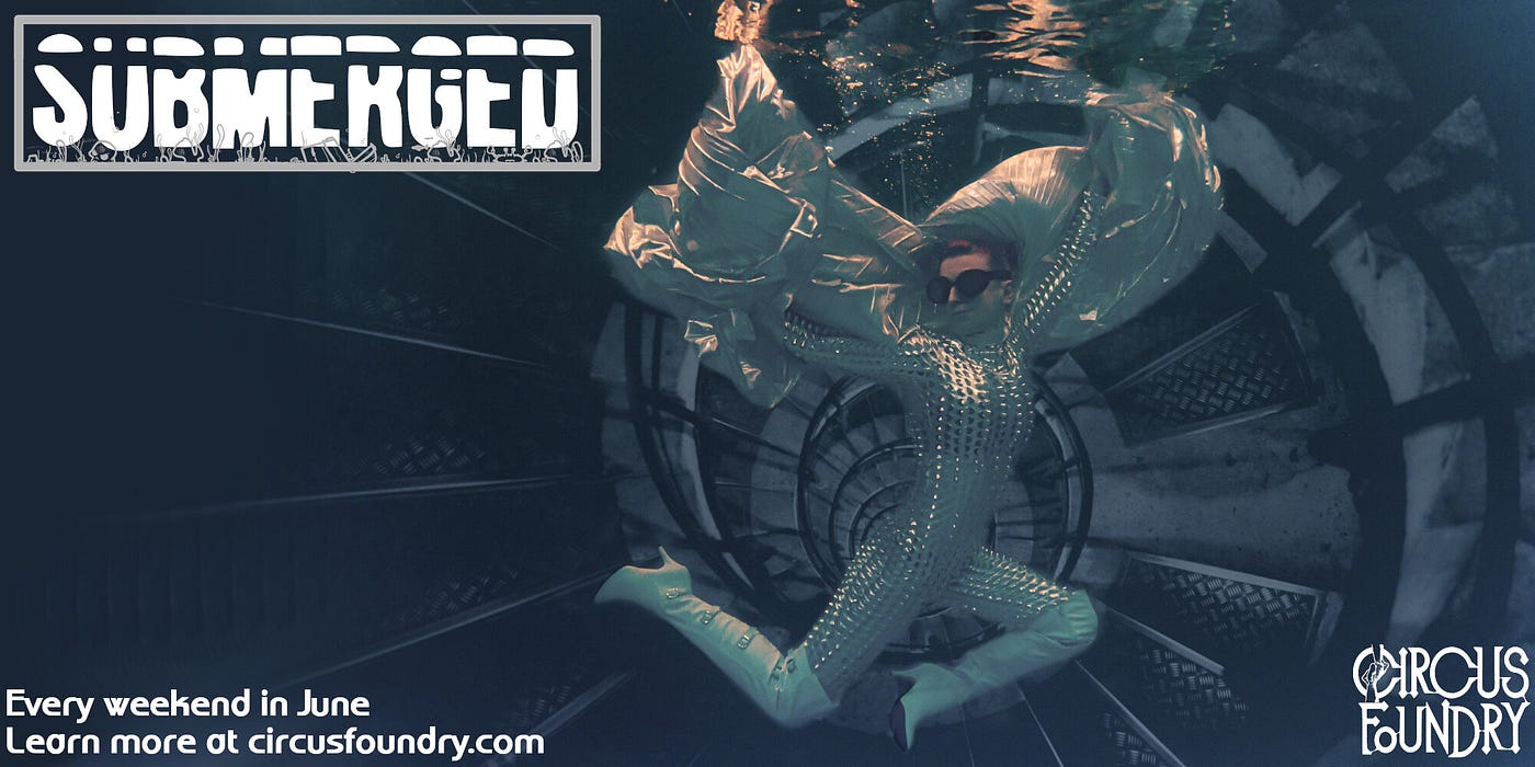 This production is 70% acting, storytelling and improv; 30% circus acts — and the formula works. The physical environment is also a crucial element of what makes Submerged so fun. It takes place at Allegory, an art gallery with an attached building full of open concept space for artist studios. The exploratory nature of wandering through a mysterious, maze-like building is exciting and unpredictable!