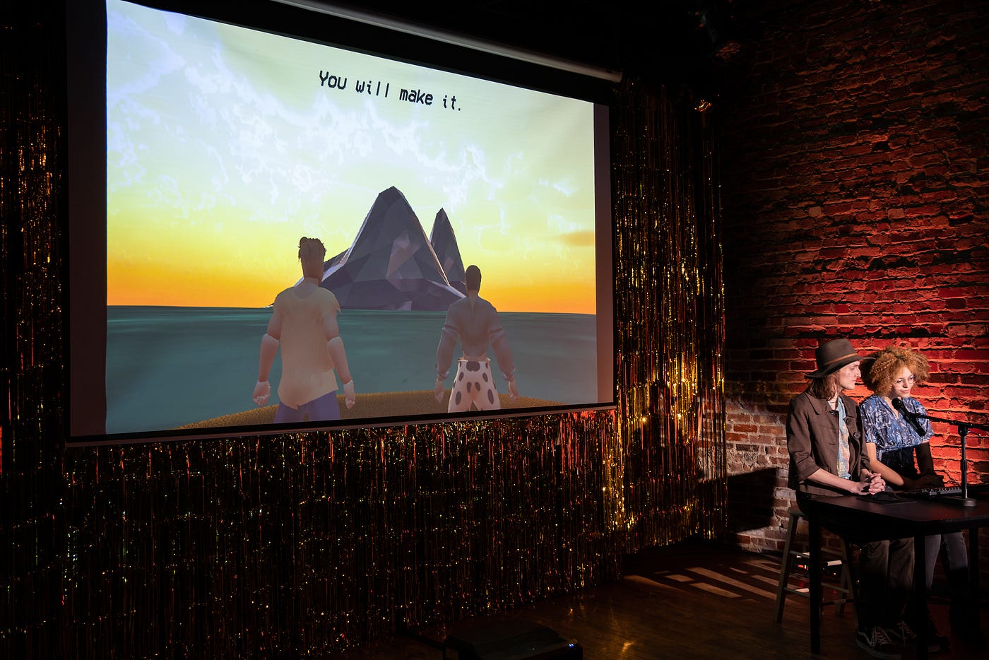 The biggest boost to Still Goes, though, was following Lotty and Wagner’s emotional journey while playing the game. When the two were consigned to a small box in the corner online, the parallels between their loving bond and Lysol and Spot’s search for connection were less clear. In person at the intimate Brick Theater, the pair’s adoration for one another was palpable and lent Still Goes a greater emotional punch.
