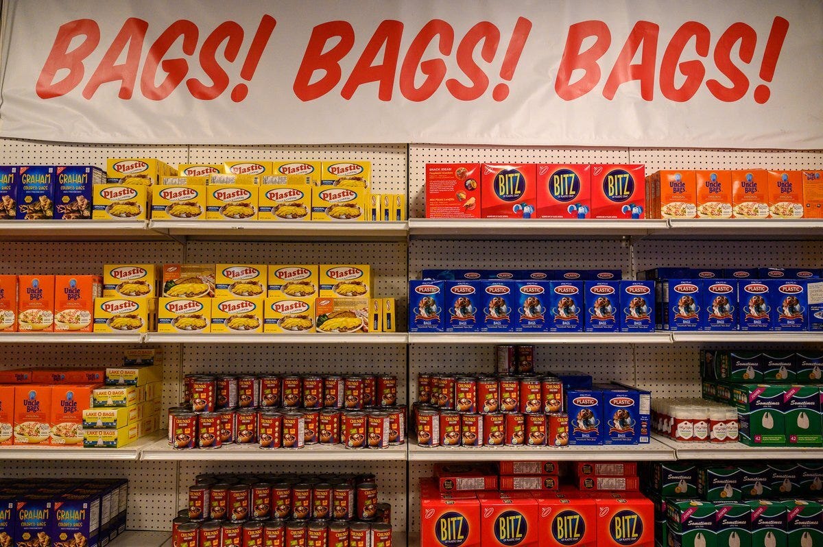 I cannot recall another time I belly laughed about plastic. Plastic itself isn’t a joke — far from it — but artist Robin Frohardt takes this ubiquitous forever-material and transforms it into a brilliant experience for all ages: The Plastic Bag Store. The supermarket-themed, immersive installation does a deep dive into single-use, disposable plastics by recasting everyday items (mostly food products), into a world of advocacy and entertainment.
