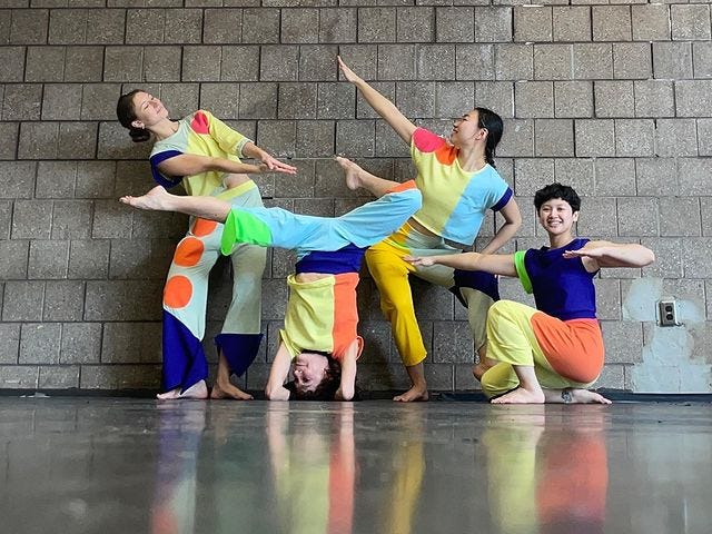 Gibney Dance Center has been home to many experimental pieces of dance over the years, but today I enter one of the studios to a playful experiential piece from choreographer Jody Oberfelder. Invited to pick a kindergarten-style stool from a pile, I make my way around the room to find a dot to sit upon. As the audience gradually takes their places, we have formed a long snaking S shape around the room. A dancer moves to the edge of the line and begins to play with the audience member next to them.