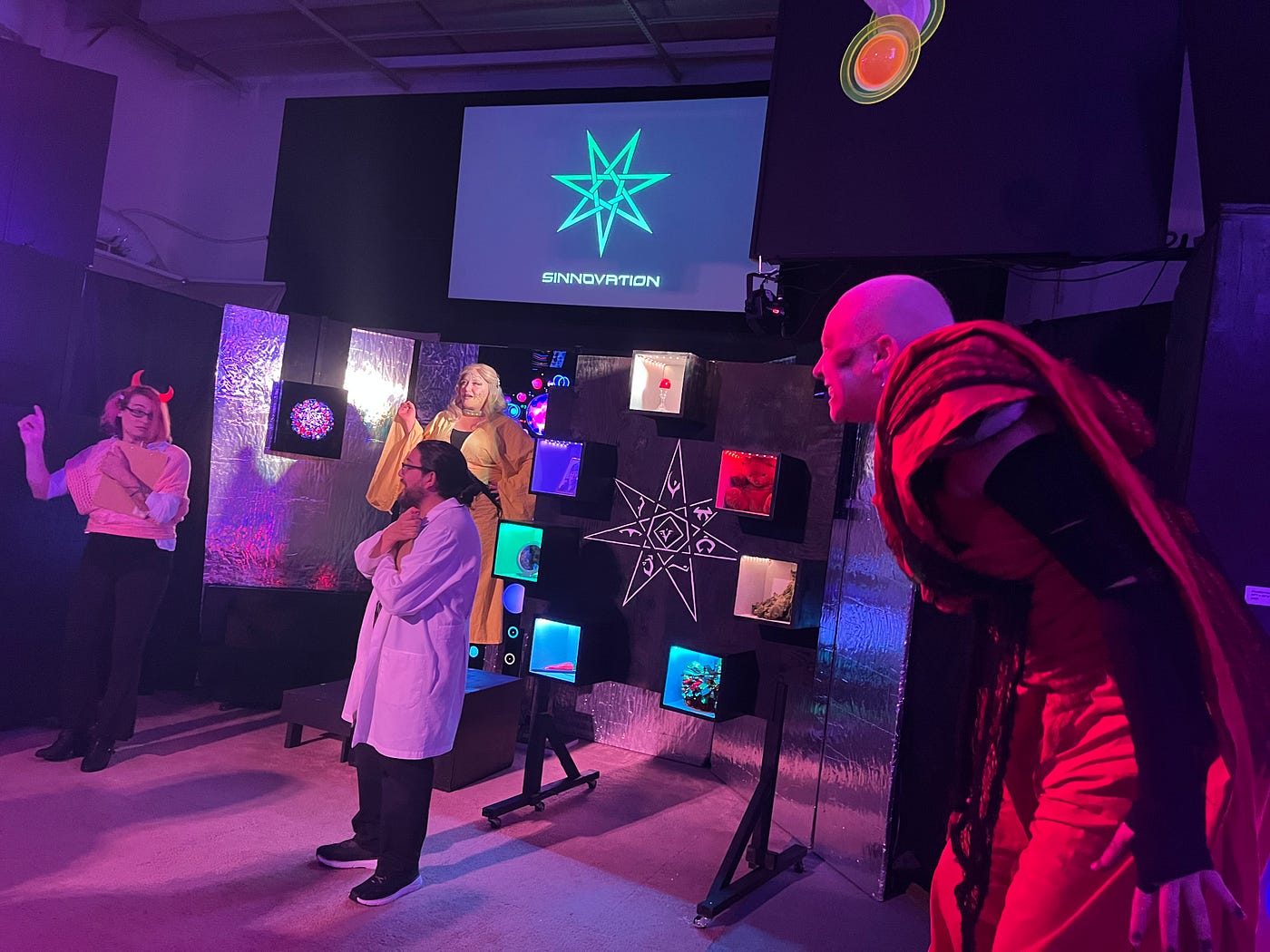 Audacious Theatre has returned with another hilarious installation of their annual Halloween show. This year, they’ve devised a way to capture and repurpose the energy generated from sinful behavior. It’s a brand new, cutting edge process, and residents of Denver have all been invited to attend a launch party for the city’s newest startup, Sinnovation.