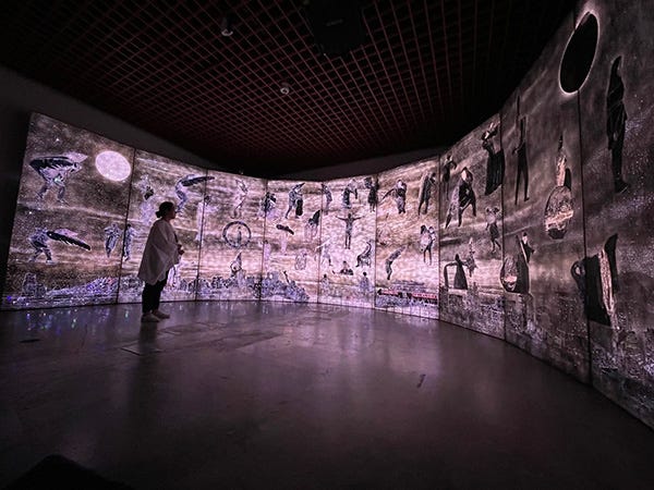 The standout exception was the spectacular and brilliantly executed Eternal Light — 21c The Last Judgment by HanHo. Inspired by Michelangelo’s fresco, Eternal Light’s nine-paneled panorama portrays ominous figures and stunning decay imbued with Swarovski-like sparkle. An oscillation of gemstone-hued lighting contrasted with an eerie, chimed toll counting down to our destruction. But rather than Christ’s final judgment of all humanity, Eternal Light depicts no Second Coming; there is no victorious savior, only the radiance of our failures.