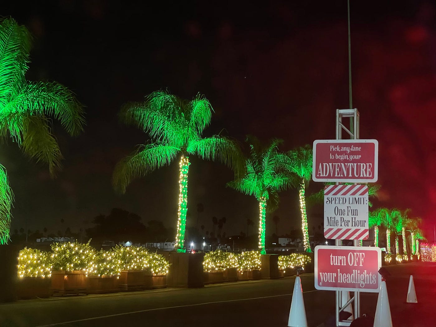 For starters: despite this being a moving processional, there were no problems with the flow of traffic on the night I visited. Meaning that no one rear ended anyone, which is more than I can say for the last time I was at a car wash. When everyone is moving at “One Fun Mile Per Hour” with their headlights off, lead foots are lightened indeed.