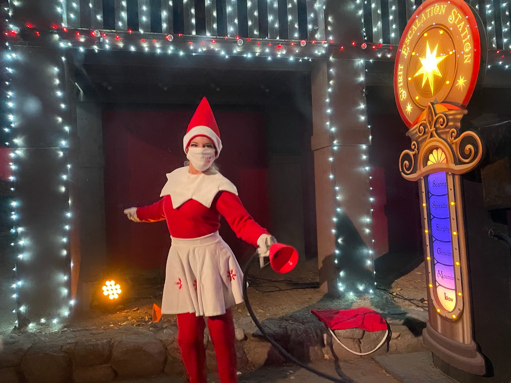 By the way: don’t get too excited about that free cocoa I mentioned, this was preview night and they were sugaring us up. (Clever.) But there is a snack bar which allows you to order online (with the help of QR codes), and the exit is through the gift shop lanes, where its possible to load up on Elf on the Shelf swag, of which there is a lot. Like. A. Lot. I had no idea.