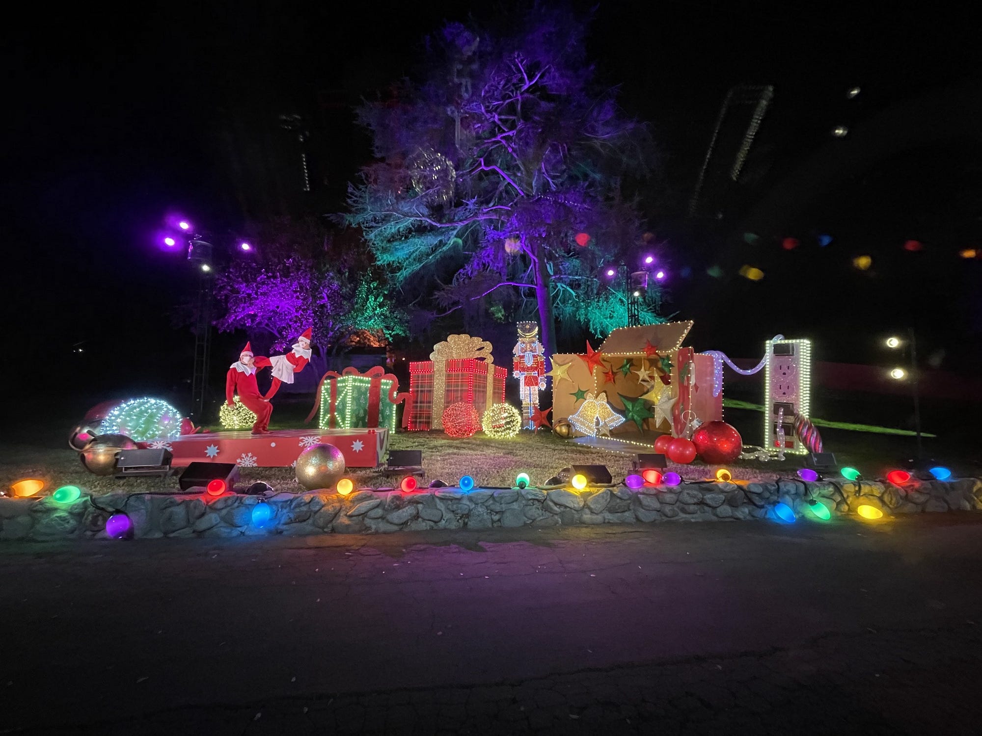 All this unfolds in front of us from the safety of our cars, with the aid of a metric ton of lights, a custom app, and a host of elves both logistical and acrobatic who somehow maintain their preternaturally cheery demeanor in the desert cold of the Fairplex after dark.