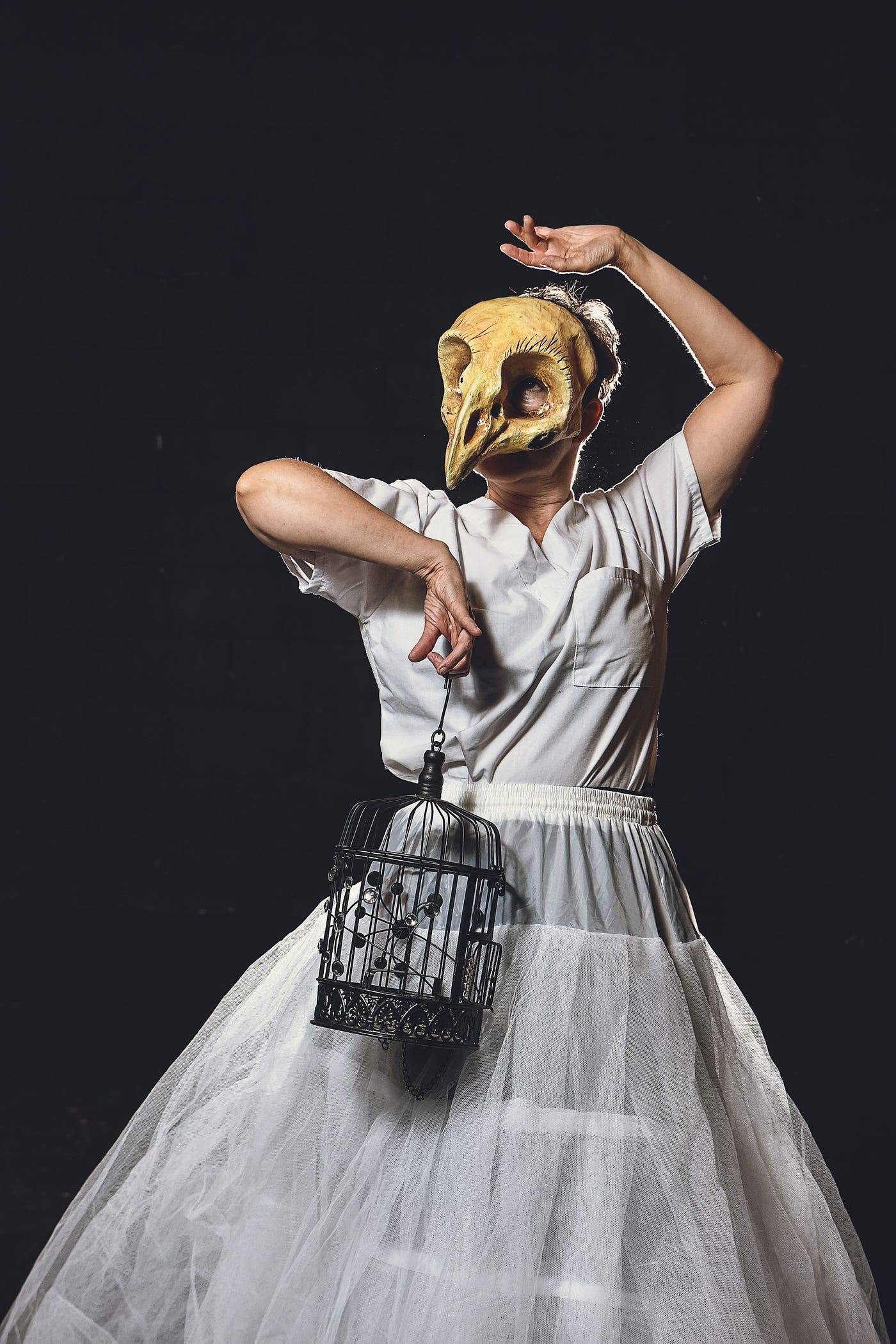 A hand reaches out to me and I slowly take it, expecting an invitation of some sort. However the warm palm only lingers a moment and then withdraws to offer me a tiny model of a house to peer into. Unfortunately, my backpack is in the way now, and the miniature can’t sit properly on my lap, so I can’t see into it as intended. I wish at this moment that a locker had been offered beforehand so that I could be less encumbered, more exposed and vulnerable and open to the performance which is going on in front of me. The model is removed and the dancers return, with masks and players changed, and my chair spins again.