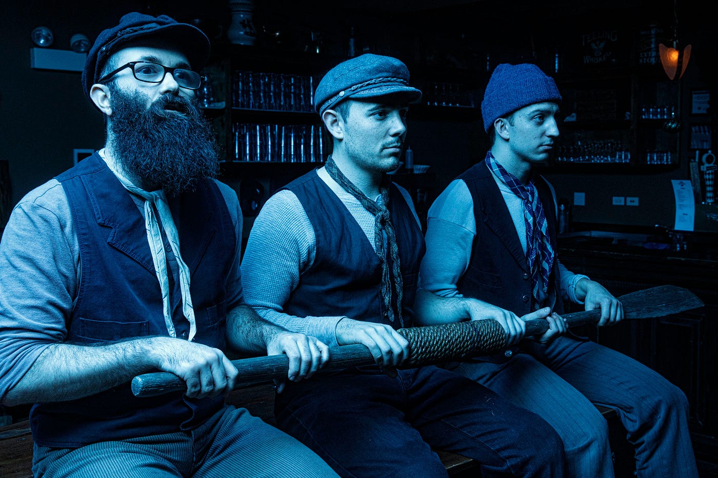 The band is finishing their set but before the last song, the leader breaks down what to expect for the next 90 minutes: how best to play, or not play (based on your preference), in The Ode at Pint’s End. With fresh beers and the song’s end, the audience learns it’s the one-year anniversary of a terrible ordeal: Eamonn and two other sailors barely surviving being lost at sea. In rehashing the details, doubts of what really happened resurface from the sailor’s wives, pressing the sailors for the real story. And between the wives’ nagging and the weight of the anniversary, the sailors crack, with details pouring forth from the past.