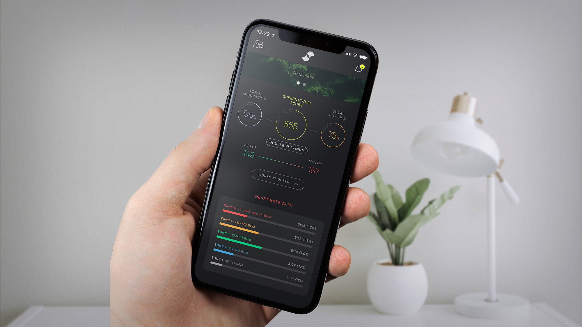 Today’s workout session was made much more enjoyable by three things: discovering that I can turn the vocals of the coach down, that I can skip the workout intro, and that I can quit out of the workout early during the cool down session and still have the points “count.” All these features are hidden in the menu that pops up when I press the Oculus button of my left controller. That said, when one of the coaches tells me to “breathe” in the middle of a barrage of targets, I lose my focus for a moment. The volume bar here is like the iMessage progress bar: a lie. The most I can turn Leanne down is to 50%, unfortunately. I’ve also got the heart rate monitoring feature working consistently now, so long as my iPhone is awake and nearby when I’m in the Quest and I start the tracking from the phone and not my Apple Watch.