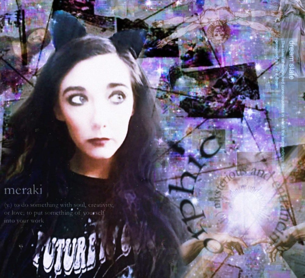 The angel in question is 444 Tempus Fugit creator Elizabeth Stranathan, whose alias for this venture is Genesis. Kind of. This Zoom-powered one on one is a mask half-on/half-off affair, which starts with one of Stranathan’s poems recited by her as her webcam displays a formless red void before ultimately switching to her face. Genesis sits just off center of the frame in front of the backdrop of a room temptingly filled with curiosities that can’t quite be made out, a cat ear headband perched casually on her head. Effortless occult anime oddness, the pretension scrubbed straight off as Genesis admits to be Elizabeth before asking me if I’d like to have an alias for the evening as well.
